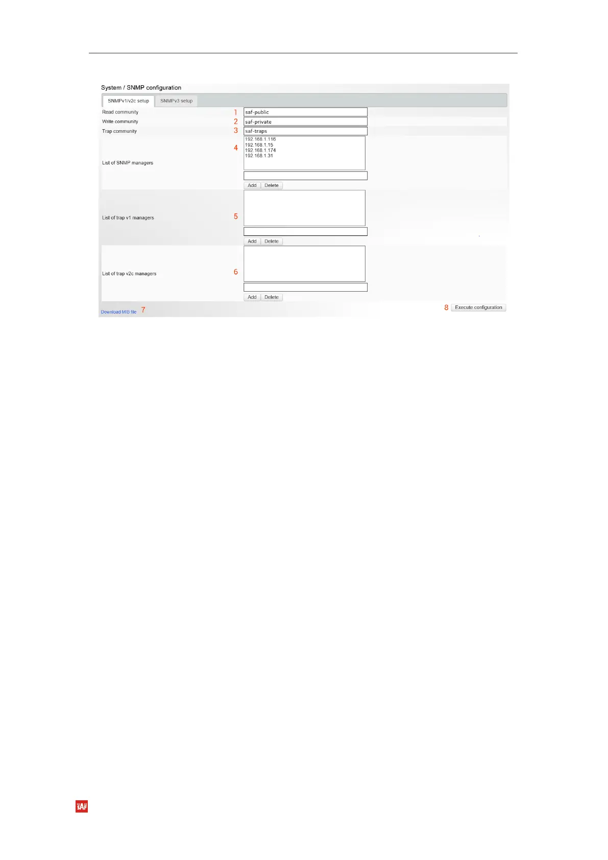 parameters to be read (modify mode). Default read community name is “saf-public”.