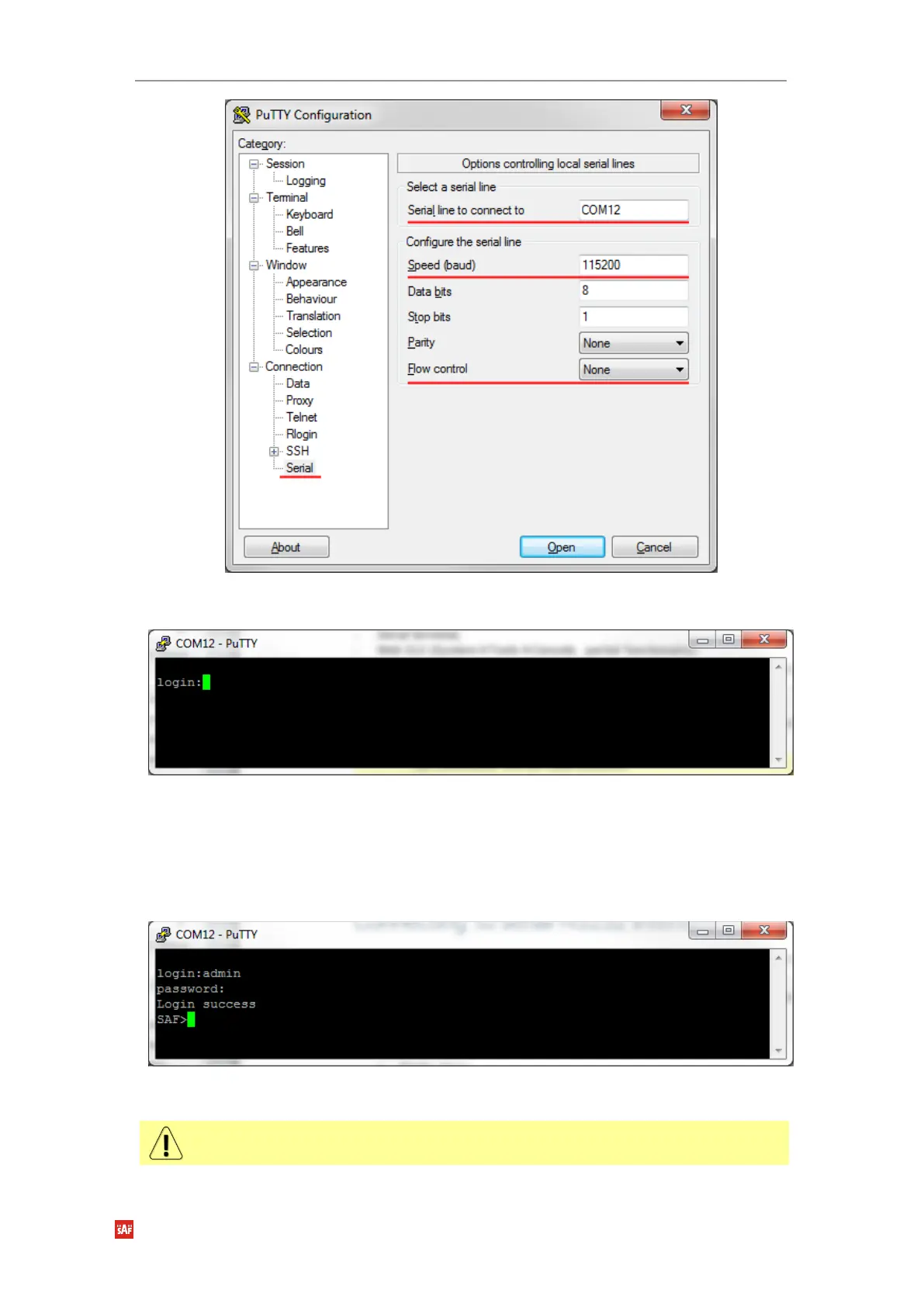 4) After successful login “SAF>” prompt should appear (prompt will differ if system name is