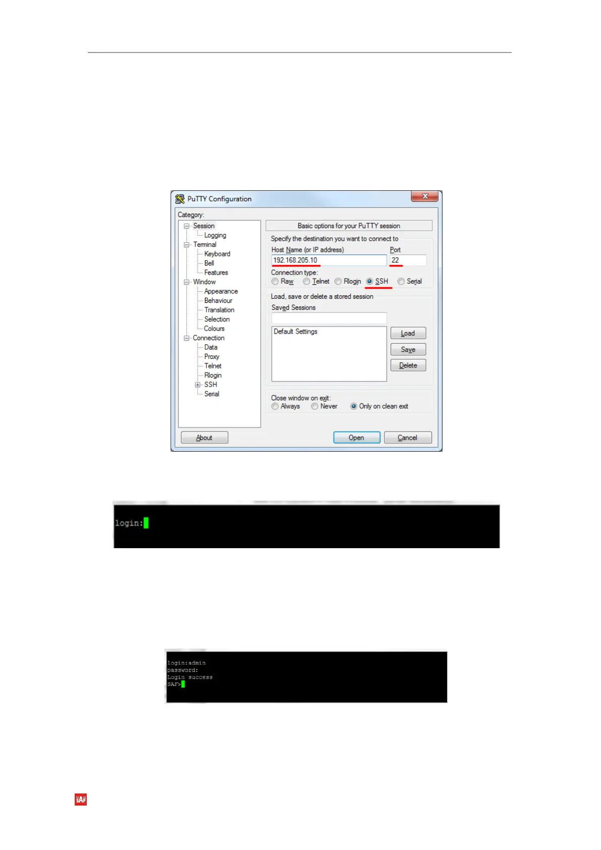 , choose “Connection Type”: “SSH”, enter the IP address and make sure that