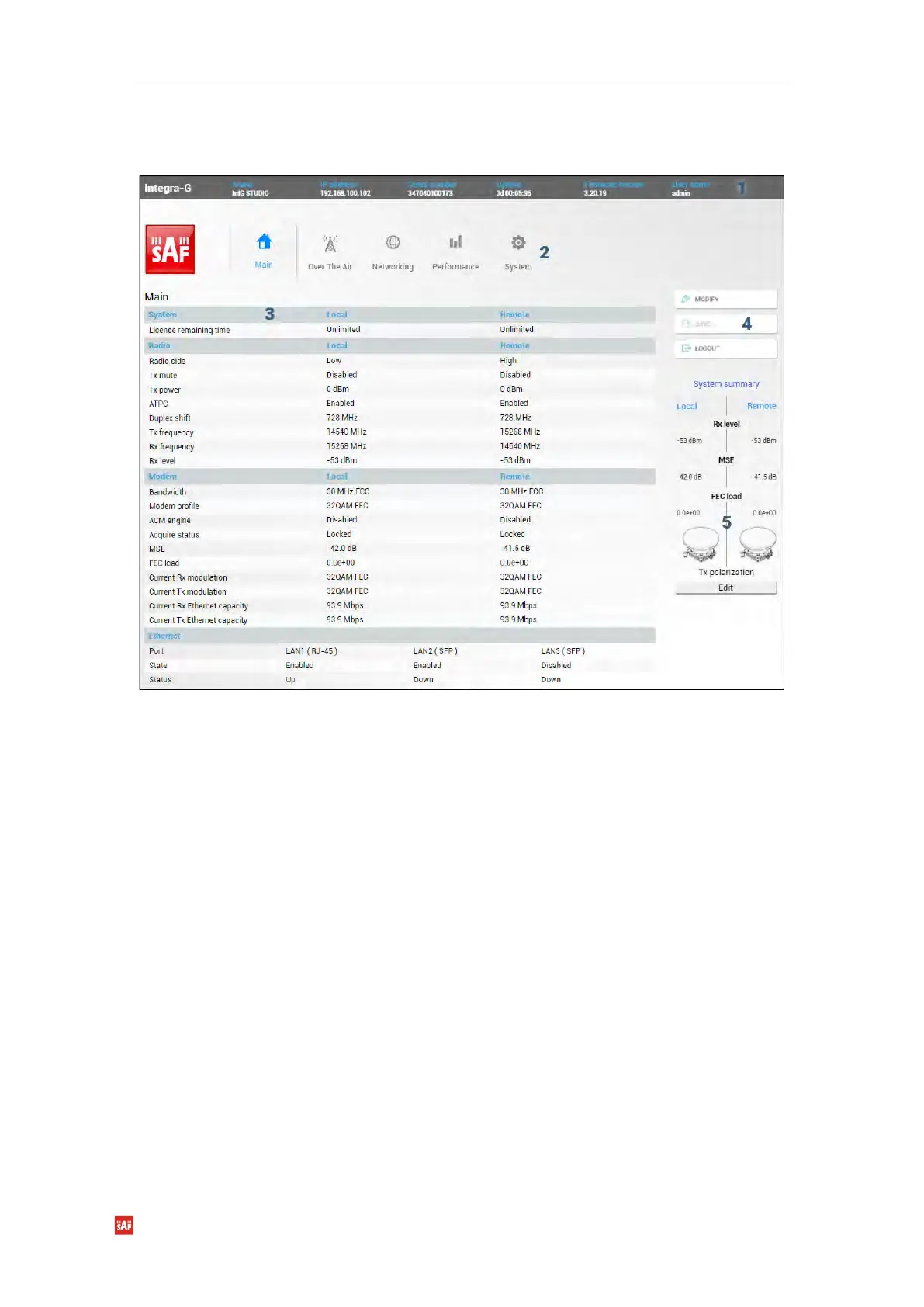 After login you will be automatically redirected to the Main page of the Web GUI: