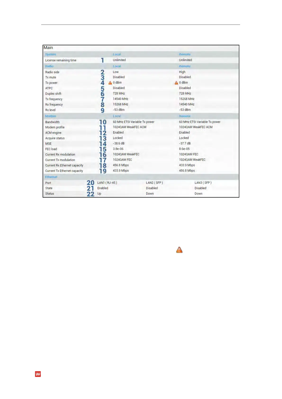 4) Tx power – shows current transmitter power in dBm. will appear if the value is