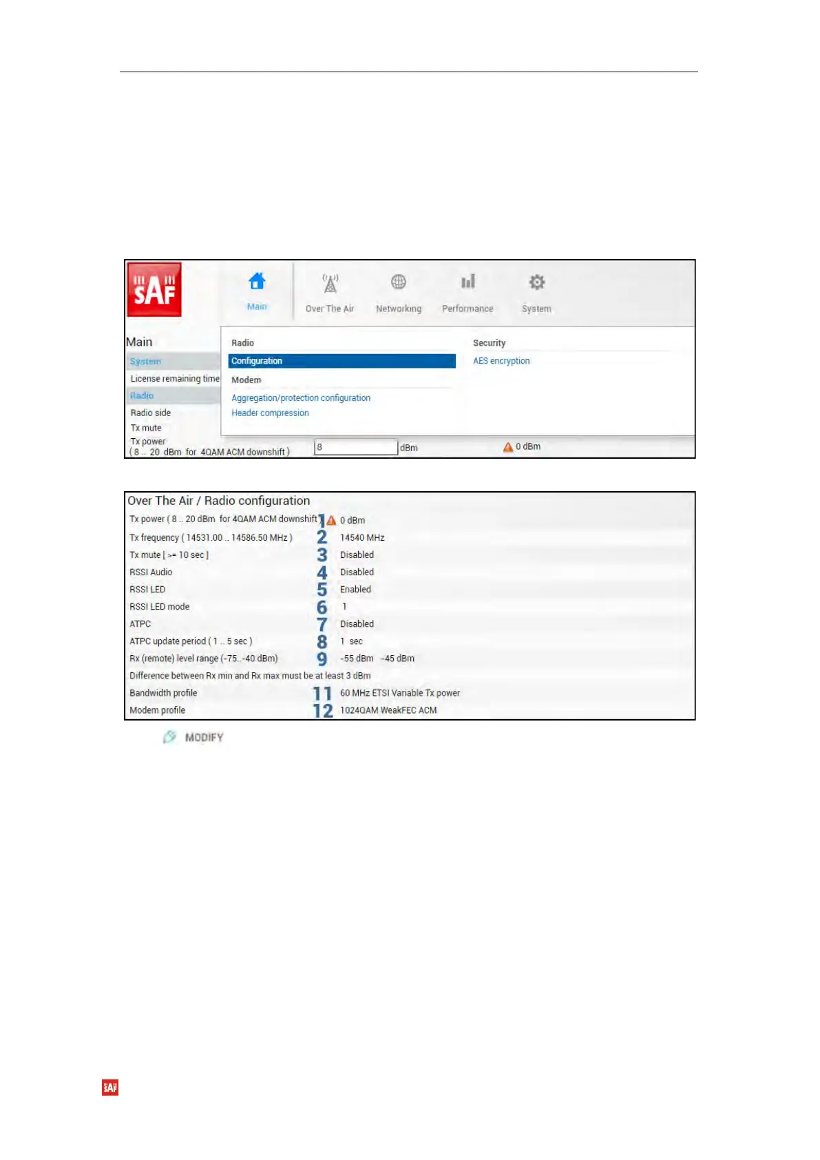 The Radio configuration page is available in the menu (Over The Air