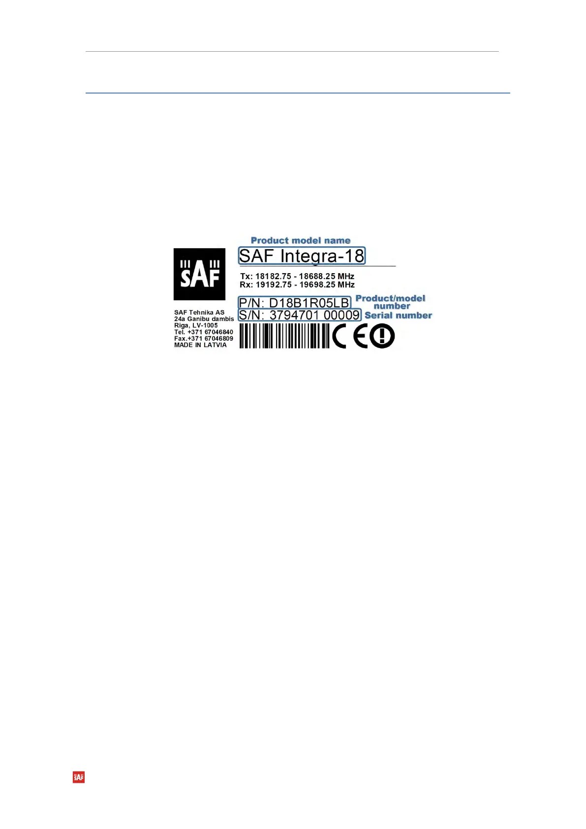 Product model name (“SAF Integra-18”). The FODU model name example is: