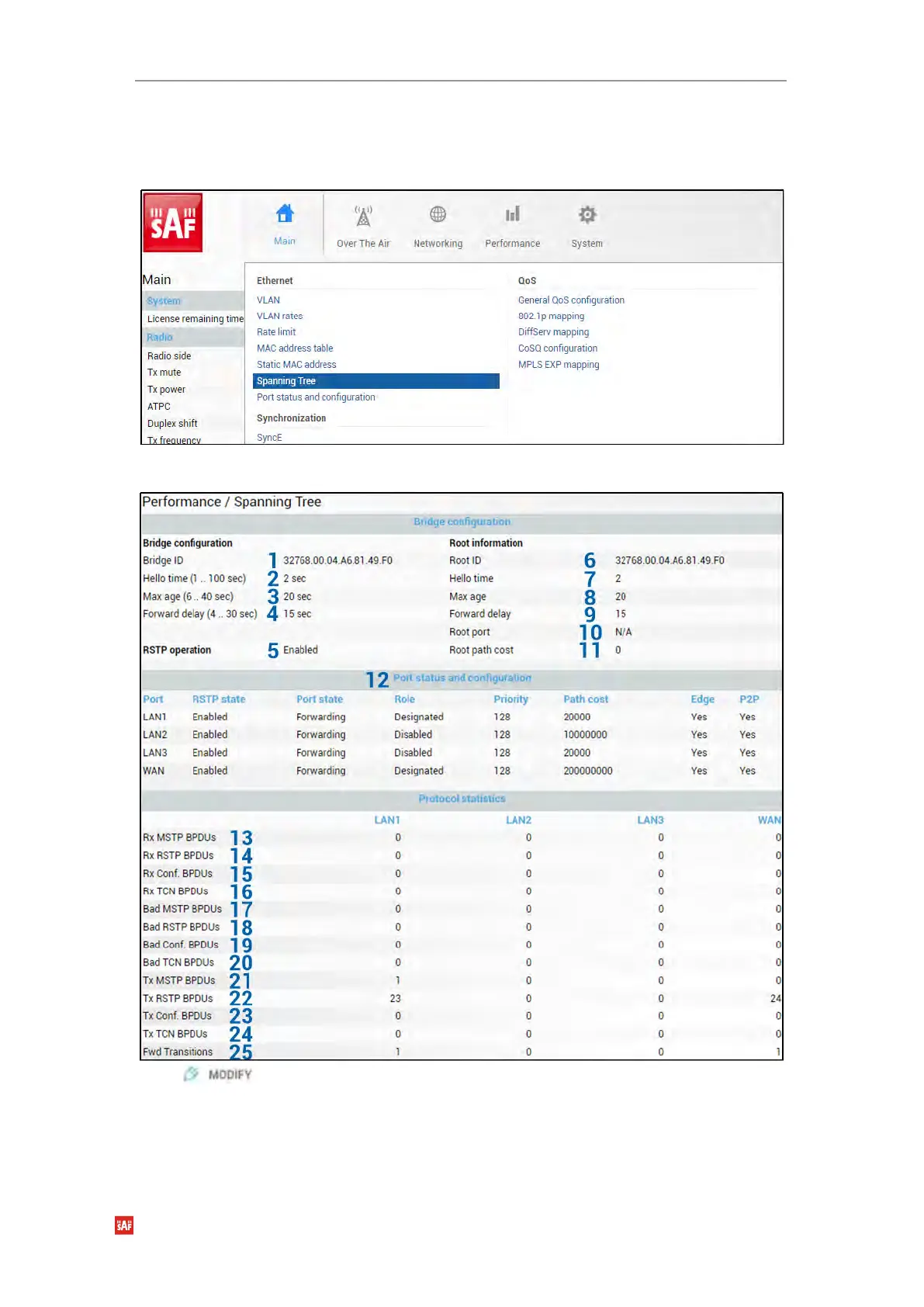 The Spanning Tree page provides the configuration of Rapid Spanning Tree Protocol (Rapid