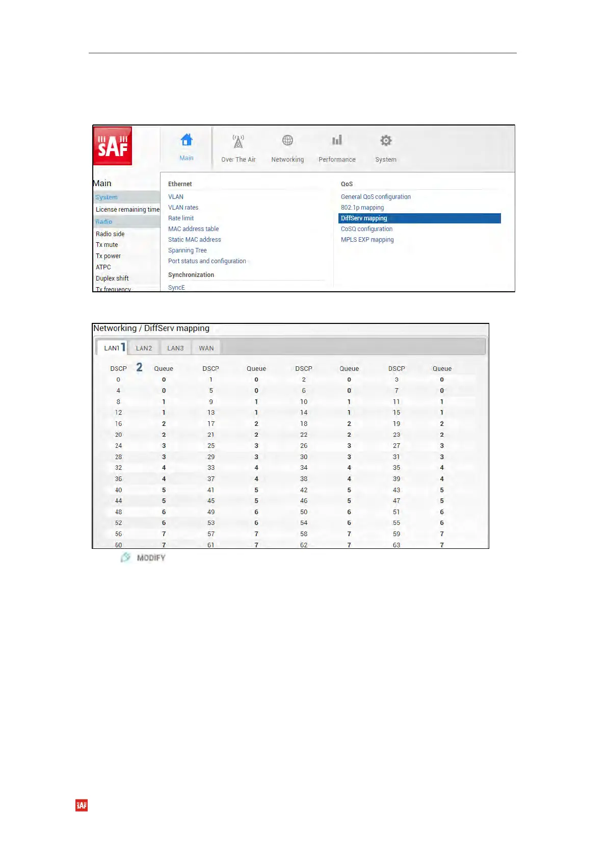 The DiffServ mapping page allows customizing the mapping of DSCP priority tags and