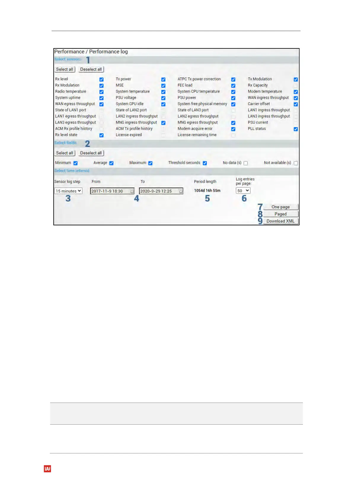 performance log. “Minimum” and “Maximum” represent the minimum and maximum