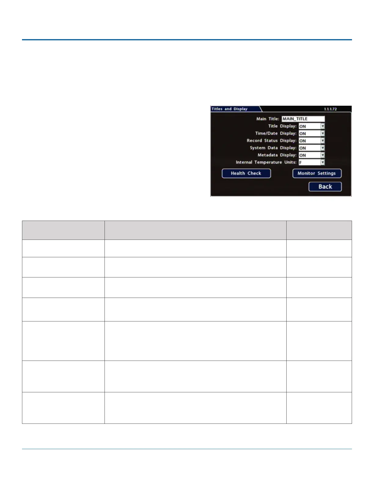 Internal Temperature Units If Metadata Display is ON, display the ambient temperature