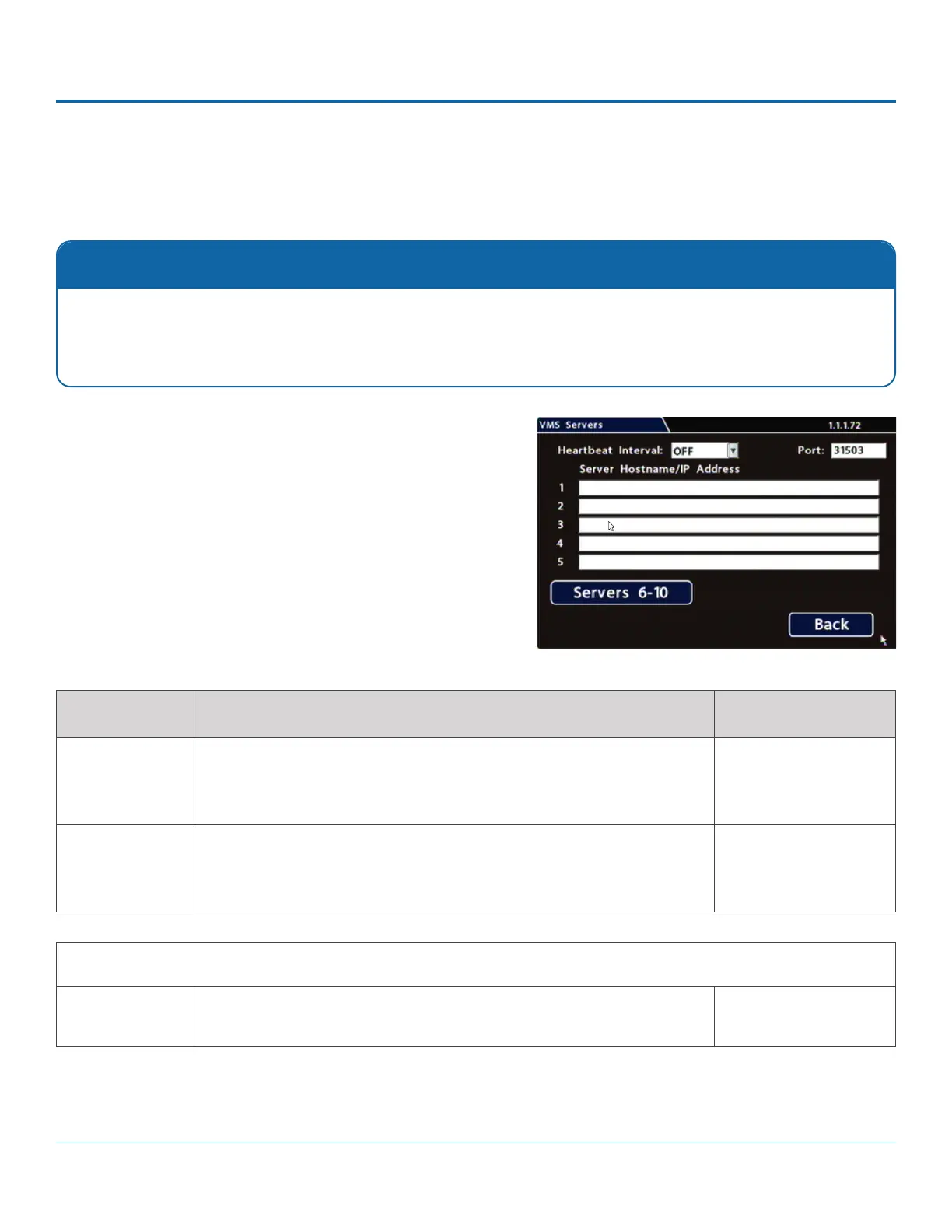 Up to 10 server hostnames or IP addresses that can receive VMS heartbeat
