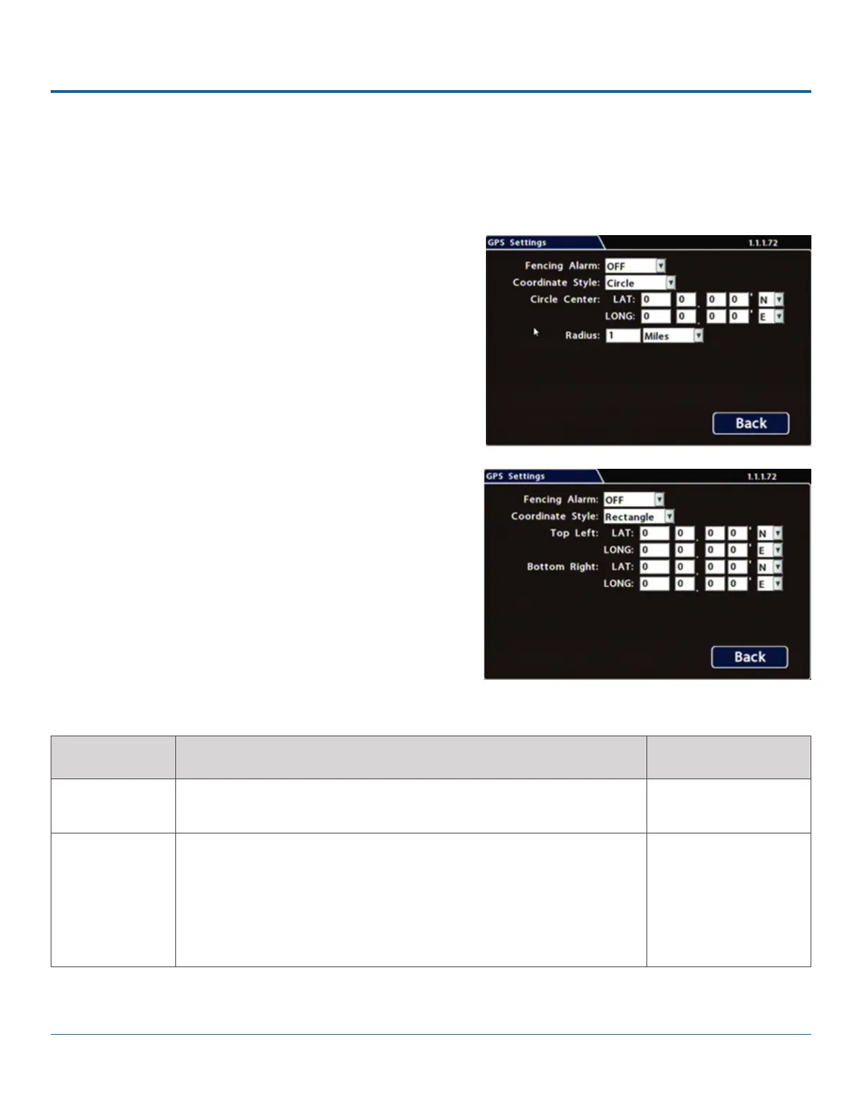 Rectangle - Sets the area for GPS fencing by upper left and lower right