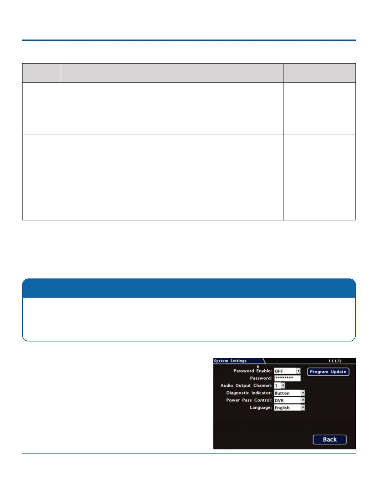 The Password applies to local DVR access, and generates a prompt when the unit powers up, before any other features