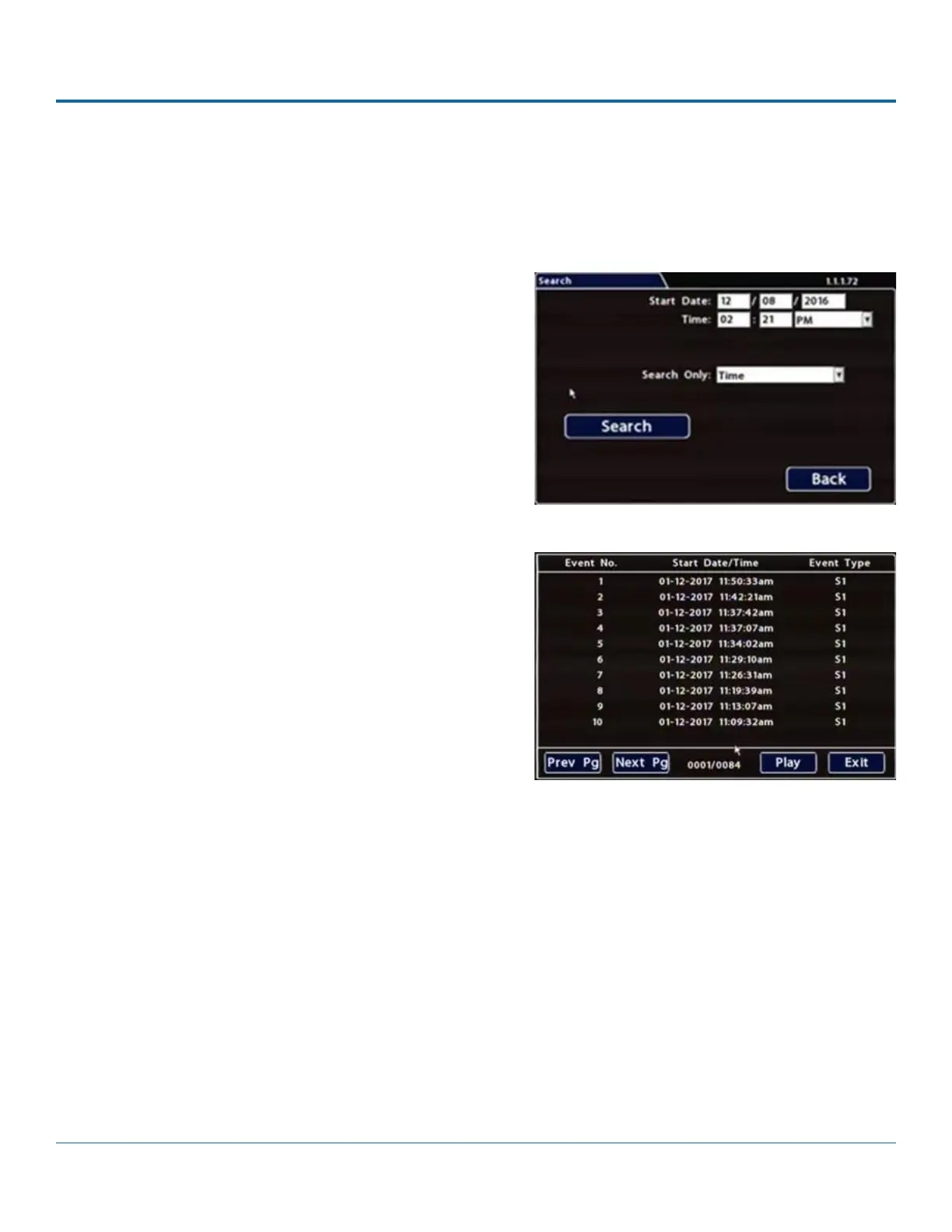 The DVR includes a simple, powerful search feature that quickly nds recorded information by Date and Time, Alarm, Signals,