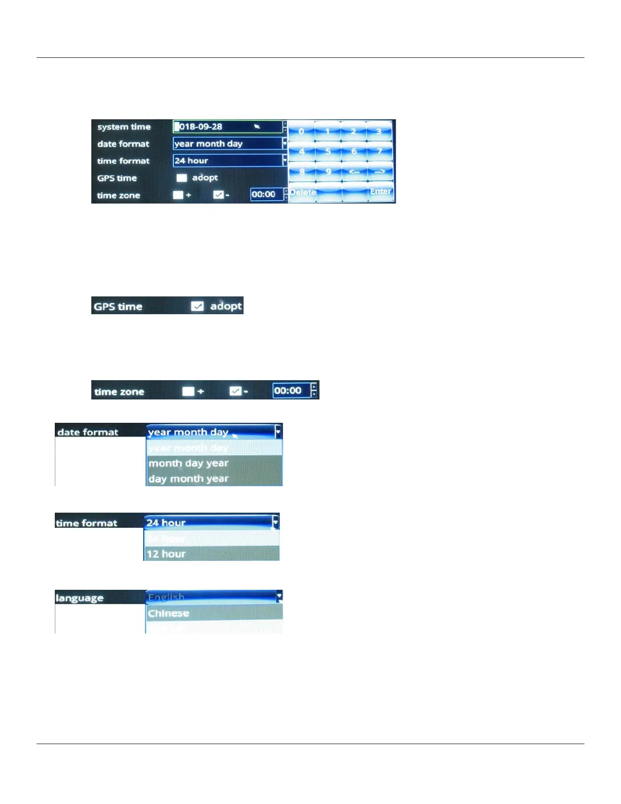 minutes numeric menu to specify the deviation from UTC.