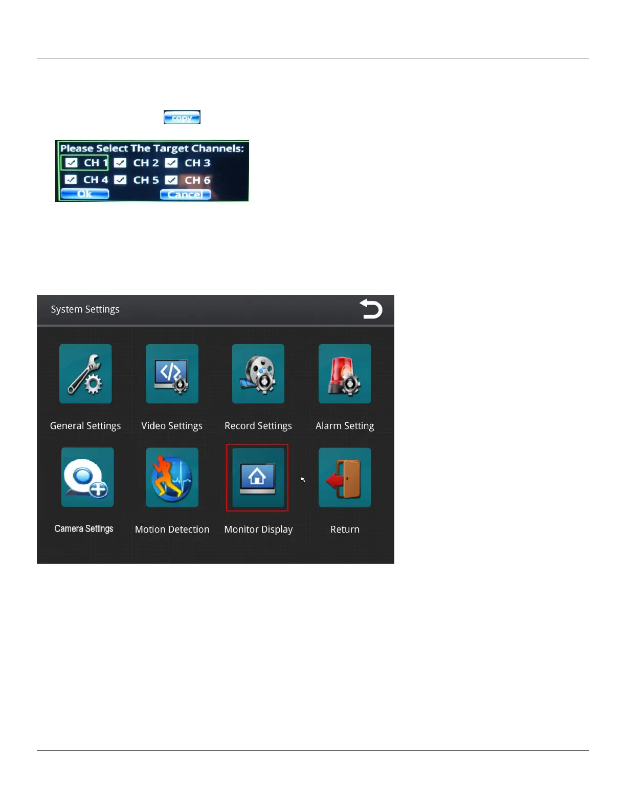 1. From the System Settings menu, select Monitor Display.