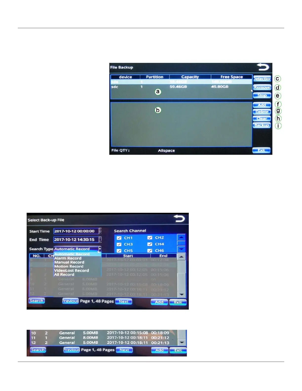 The File Backup menu enables you to back up the video les stored on the SSV9.