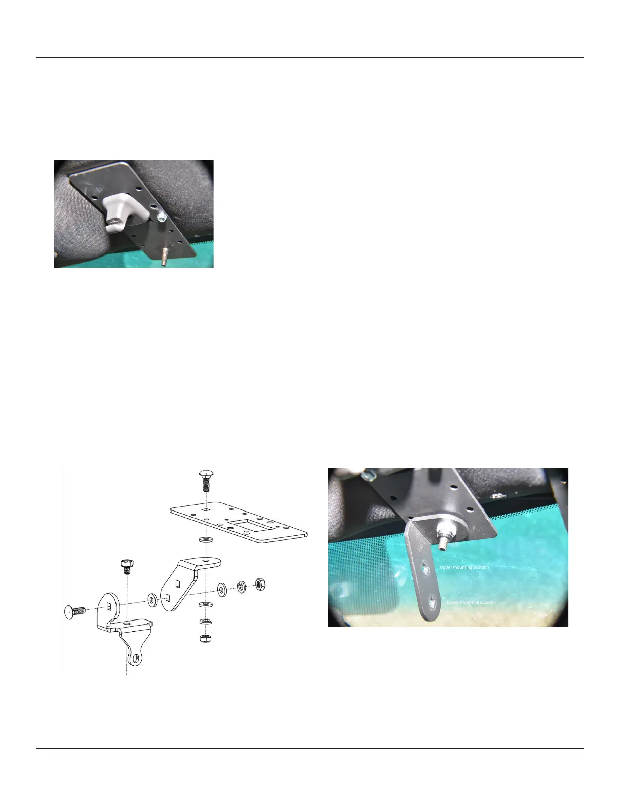 1. Install the at plate by removing the visor clip and placing the plate around the hole. Mark and drill pilot holes rst to