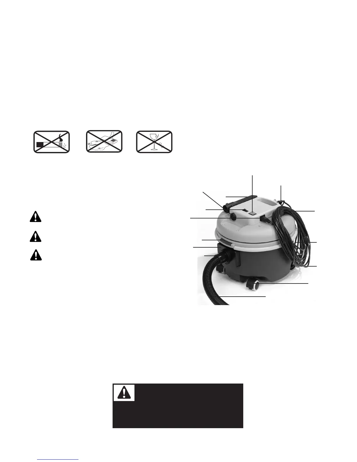• Do not vacuum in any burning ash, liquids or glass fragments