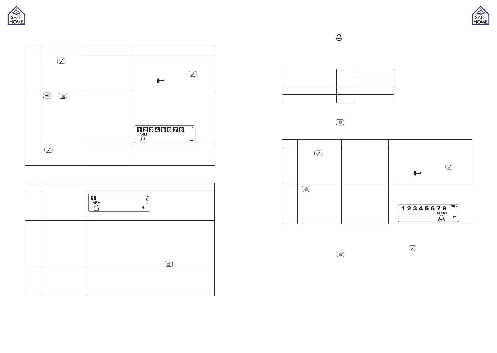 I ALERT mode vil aktivering af alarmen give en ringeklokke lyd og panelet vil blinke grønt