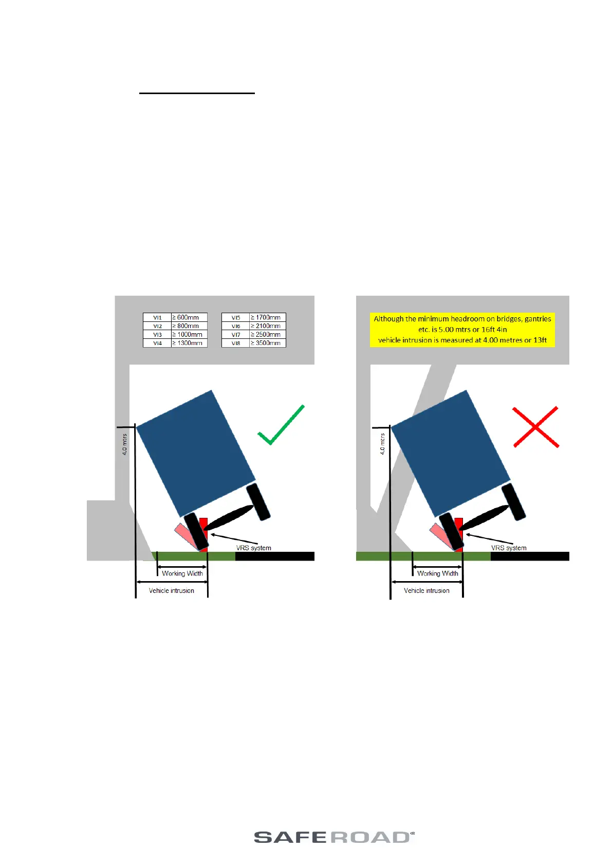 width of W2 ≥ 800mm its class of normalised vehicle intrusion (VI)