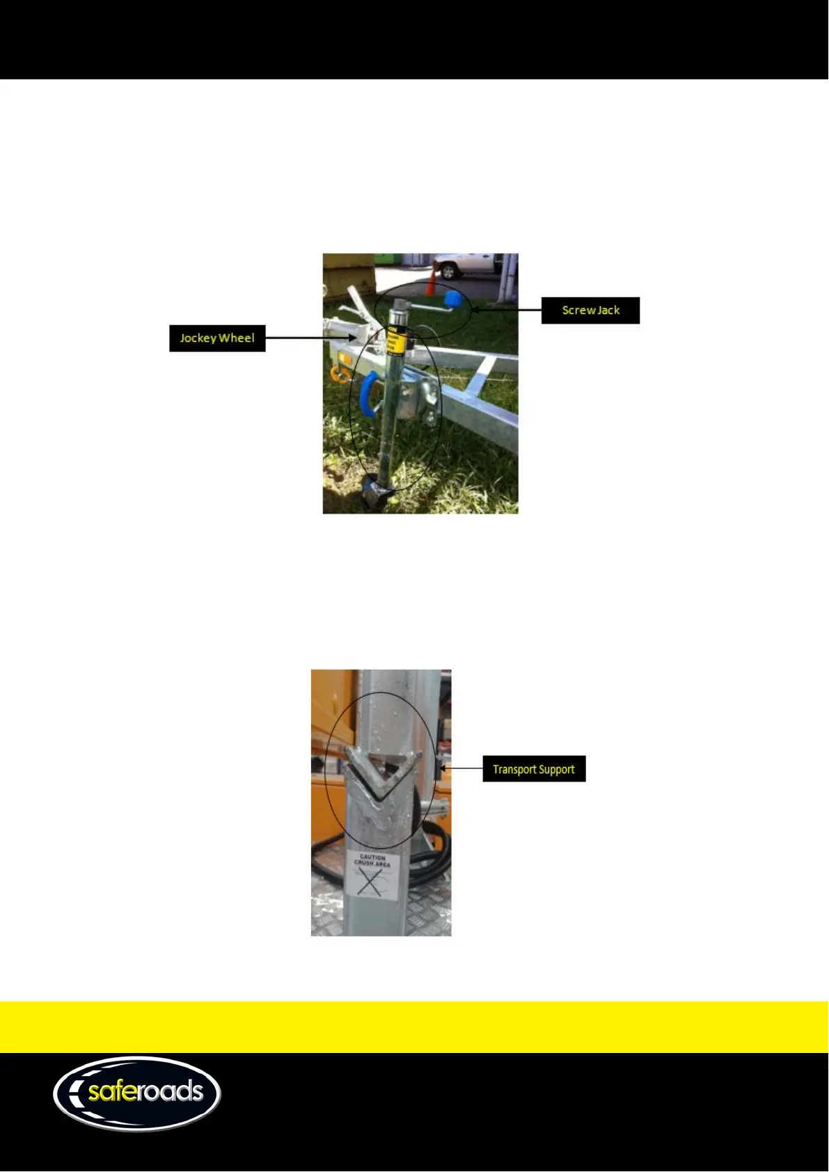 Ensure the Jockey Wheel is seated in the horizontal position prior to transporting the trailer.