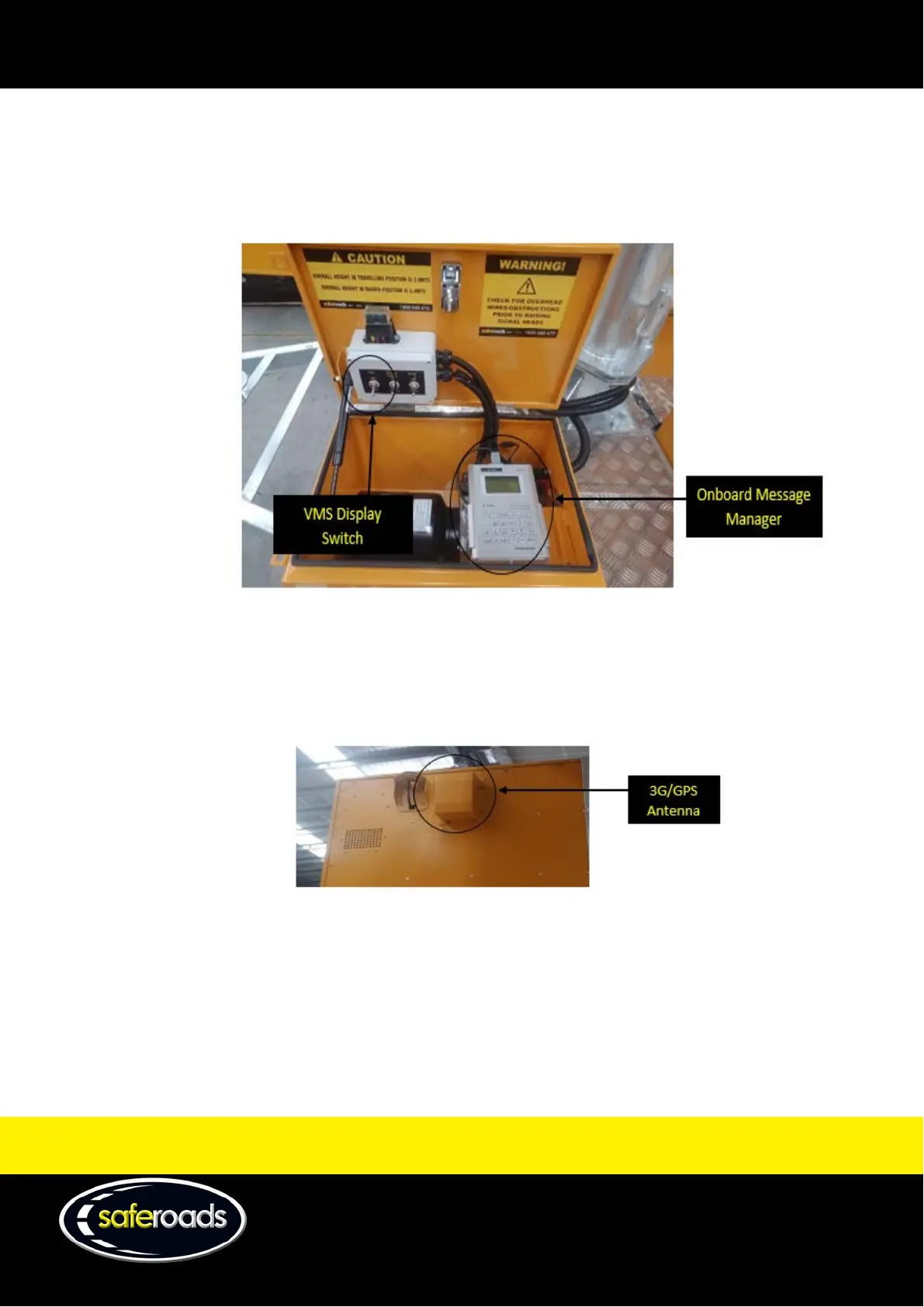 The Onboard Message Manager is located in the front passenger side toolbox. It is a control device used specifically