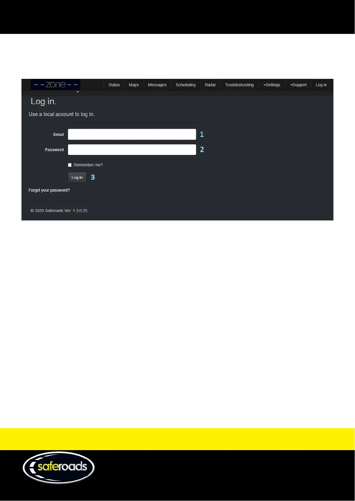 Saferoads Zone 2 VMS - Dashboard Overview; Dashboard