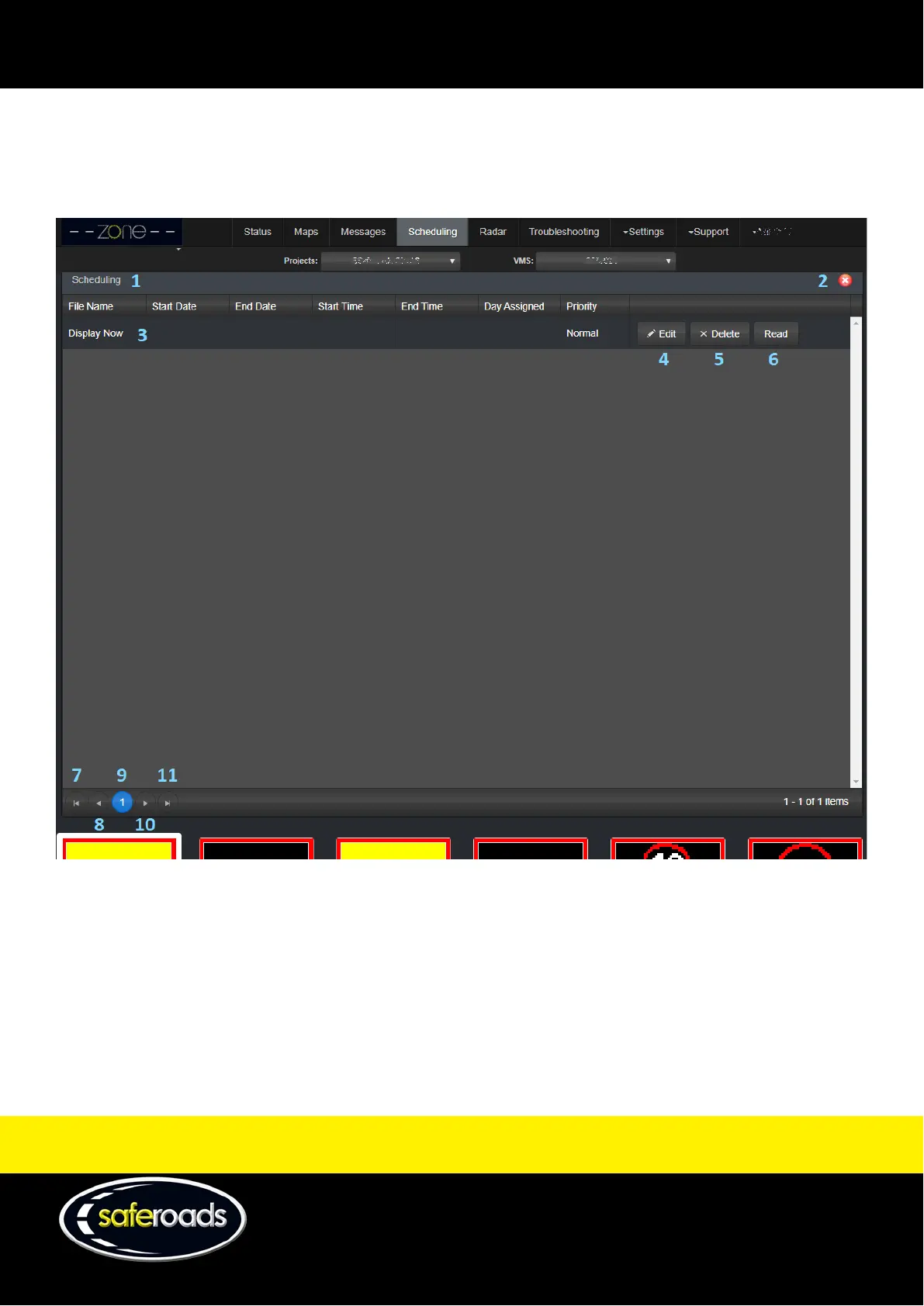 Saferoads Zone 2 VMS - Scheduling Page; Schedule; Edit Schedule
