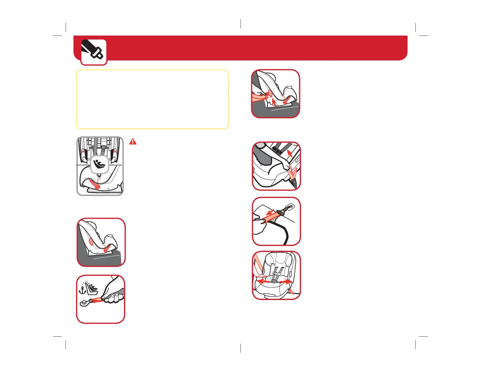 and how to lock a child restraint in place. Do not twist belt.