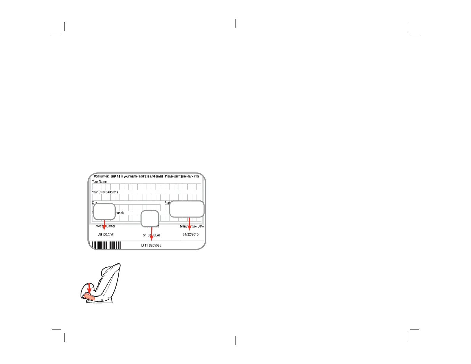 parts. The codes can be found on a label on side of child restraint.