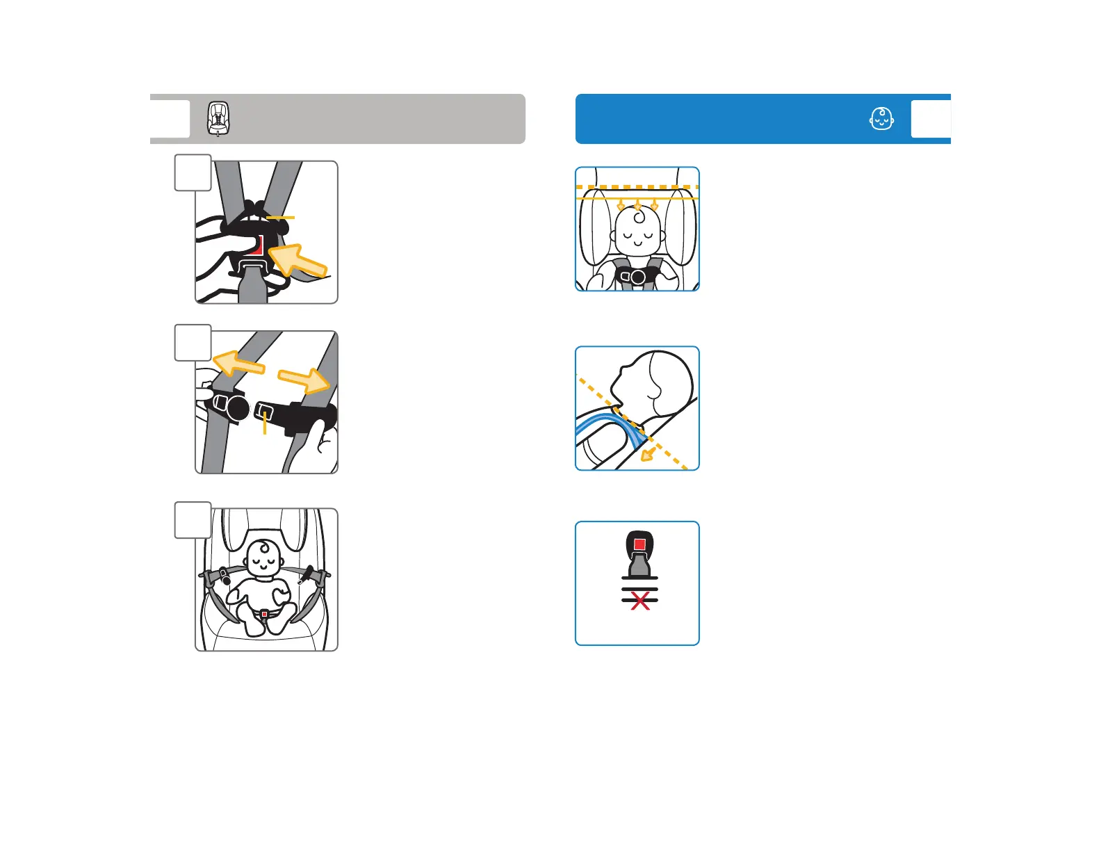 To change headrest/harness height, see pages 10-12.