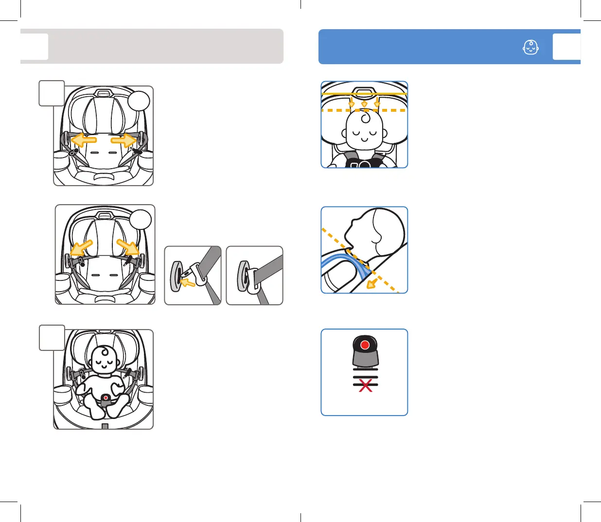 To change headrest/harness height, see page 12.