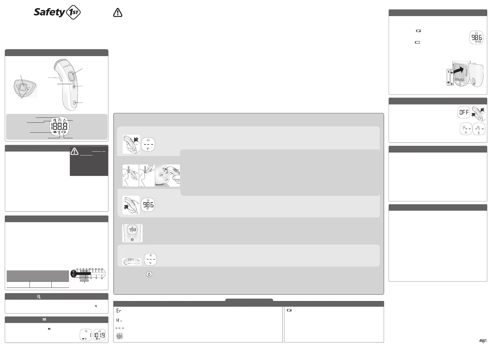 • Este NO es un termómetro de oído. Mida la temperatura en el centro de la frente. • Tenga cuidado cuando tome
