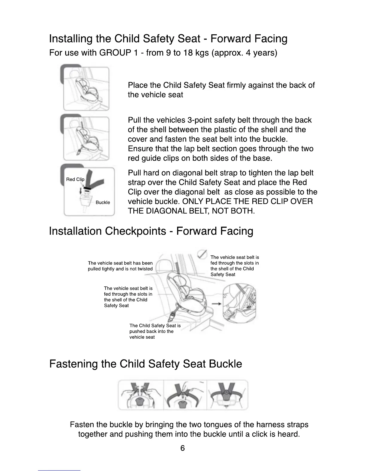 vehicle buckle. ONLY PLACE THE RED CLIP OVER