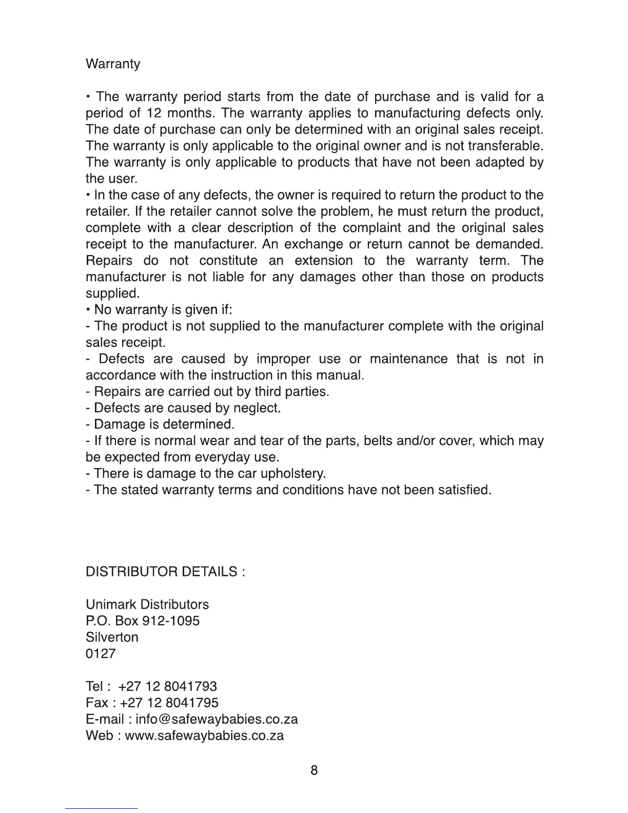 E-mail : info@safewaybabies.co.za