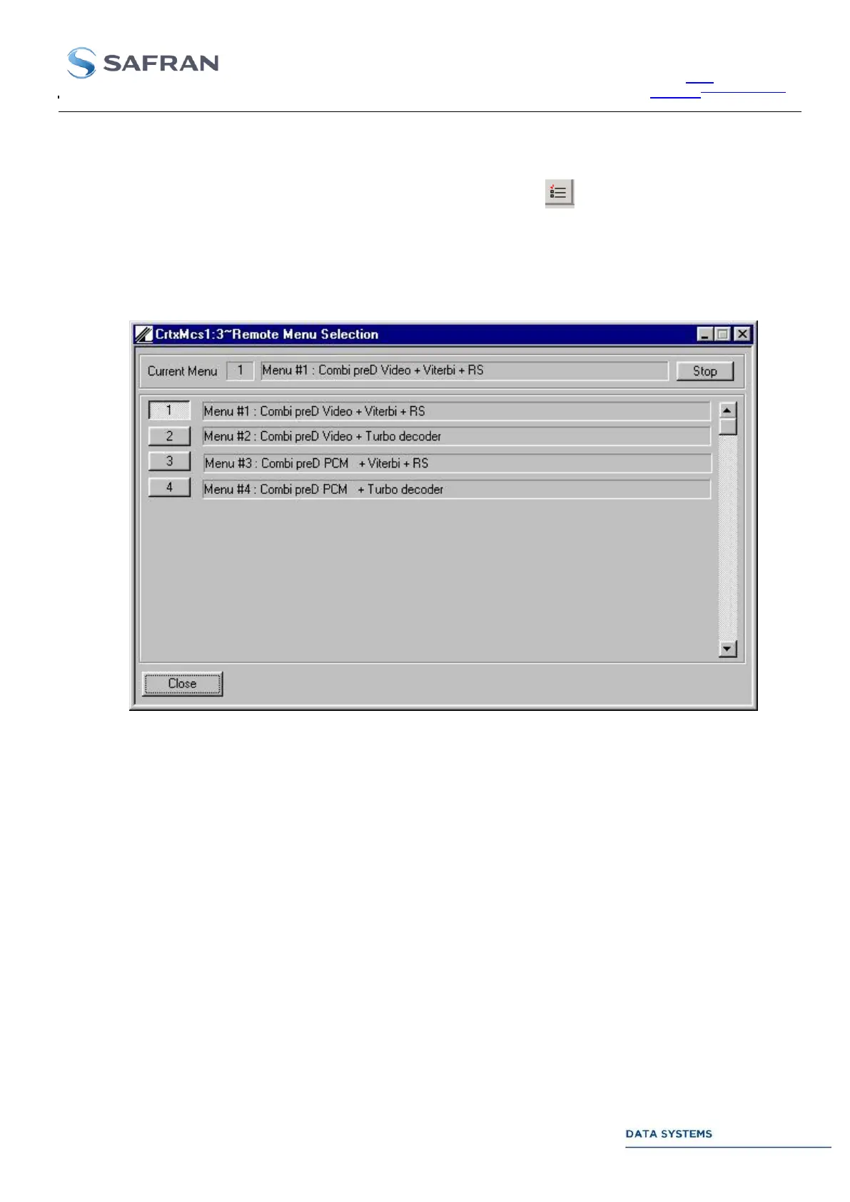 From the SAFRAN DATA SYSTEMS MCS the operator can access the RAC server by clicking successively, in