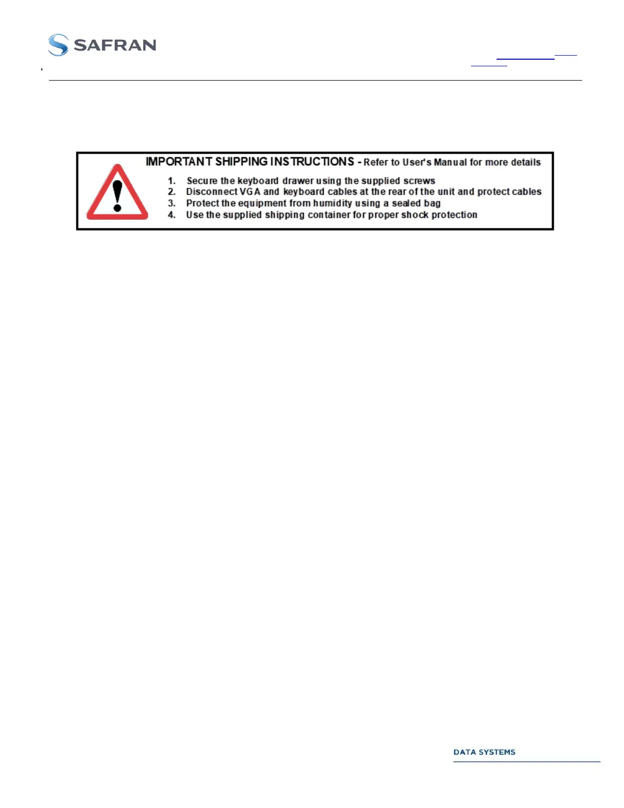 4. Use a shipping container that provides adequate shock protection. The original Safran Data Systems