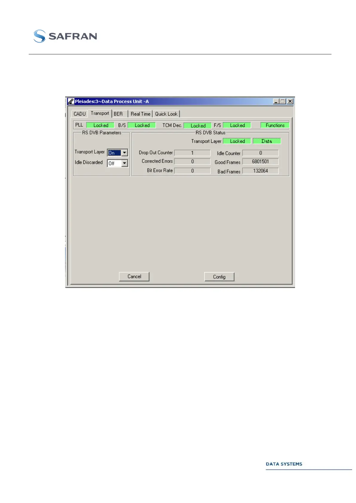 This window is only available with RS DVB and LDPC decoding. It gives the status of the Transport