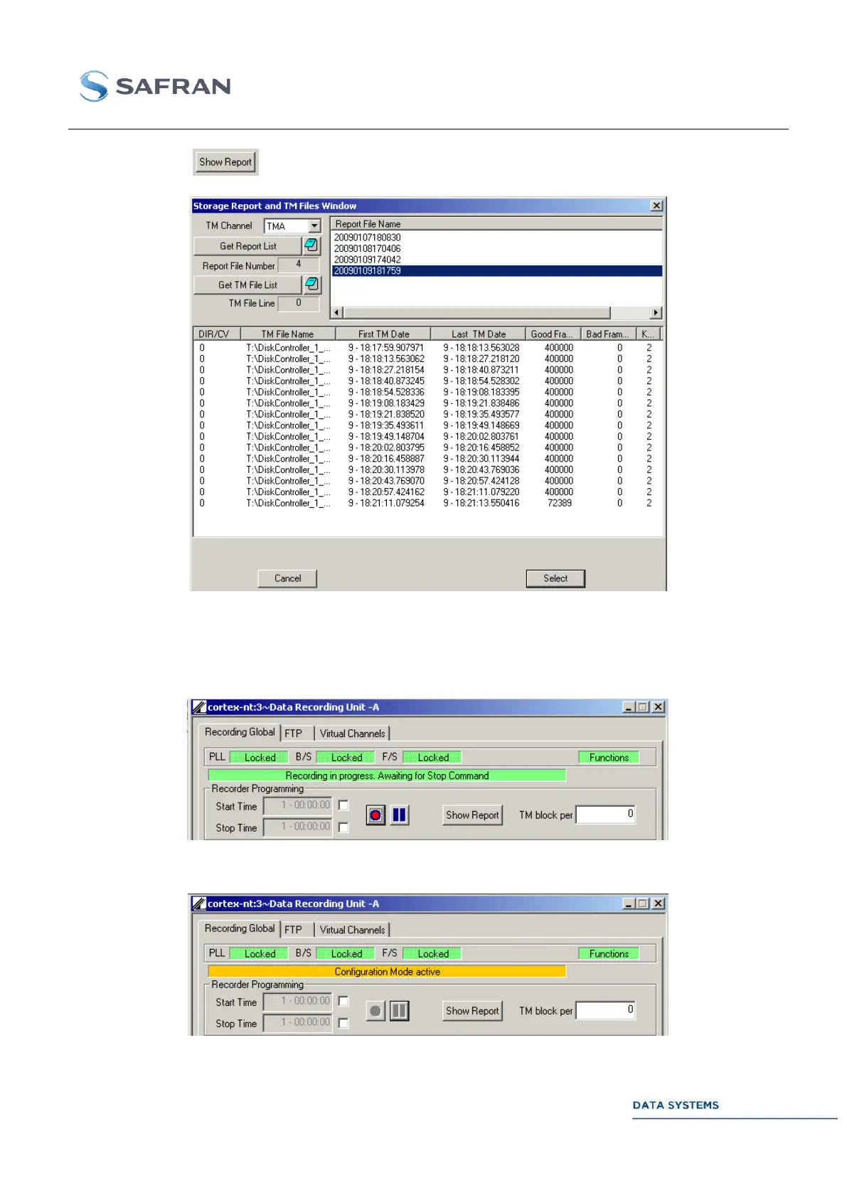 Select a report by clicking on the corresponding line in the upper window to display the recorded files