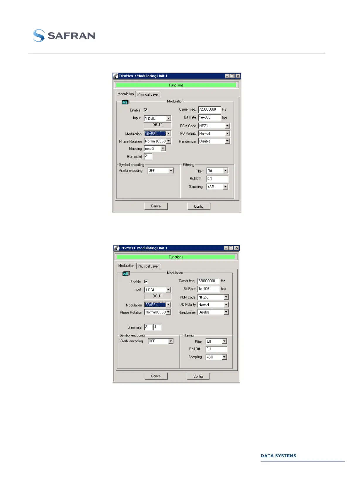Safran CORTEX Series - 16 Apsk; Figure 156: 16 APSK Configuration; Figure 157: 32 APSK Configuration