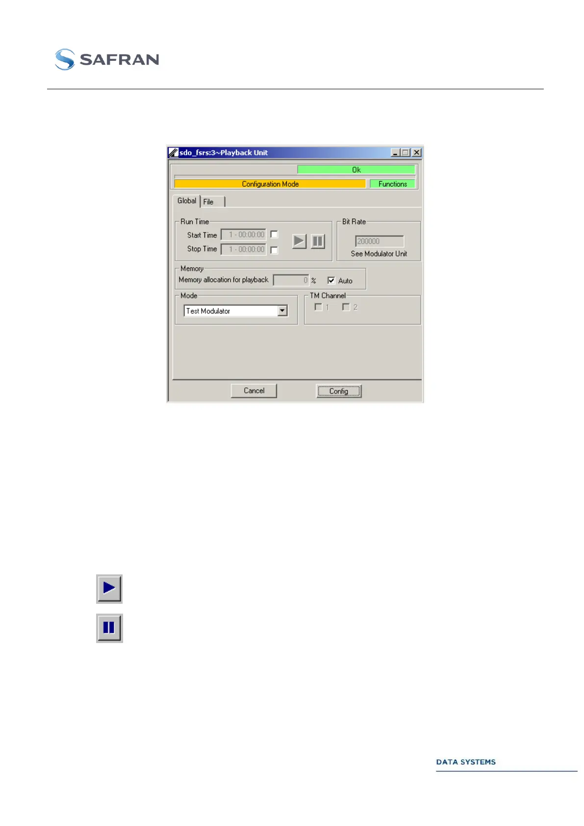Important: In “Test modulator” mode, the bit rate of the playback is the bit