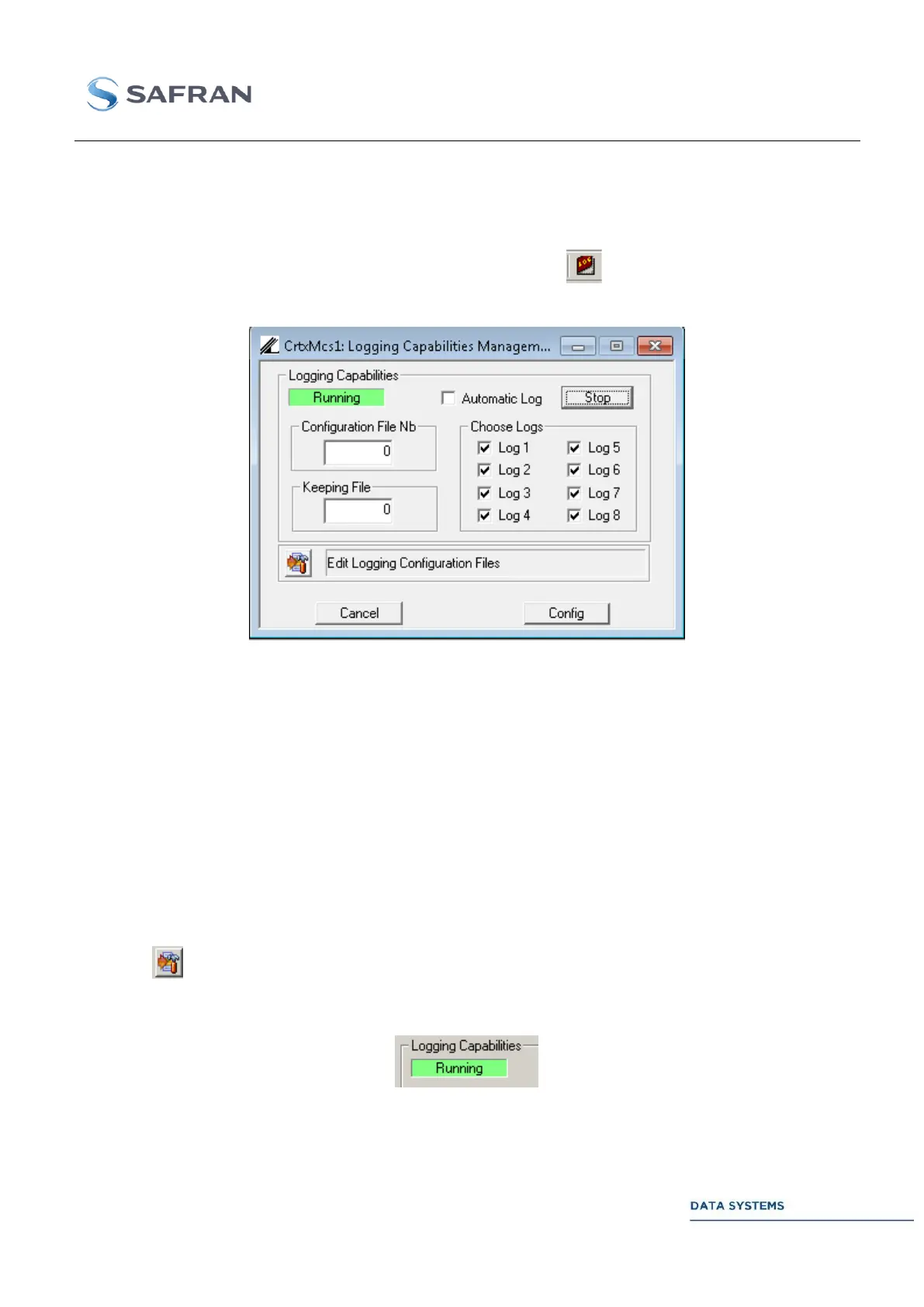 To control the data logging function, in the upper toolbar click on . This operation opens the data