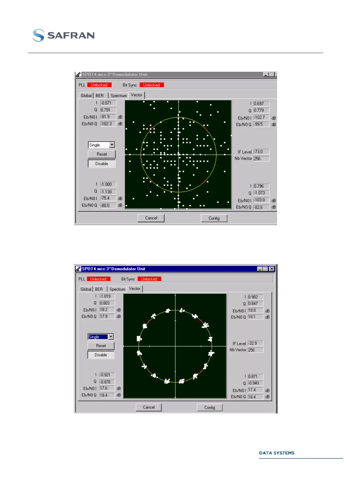 Incorrect IF setting (signal = QPSK 720 MHz. Demodulator setting = 721 MHz)