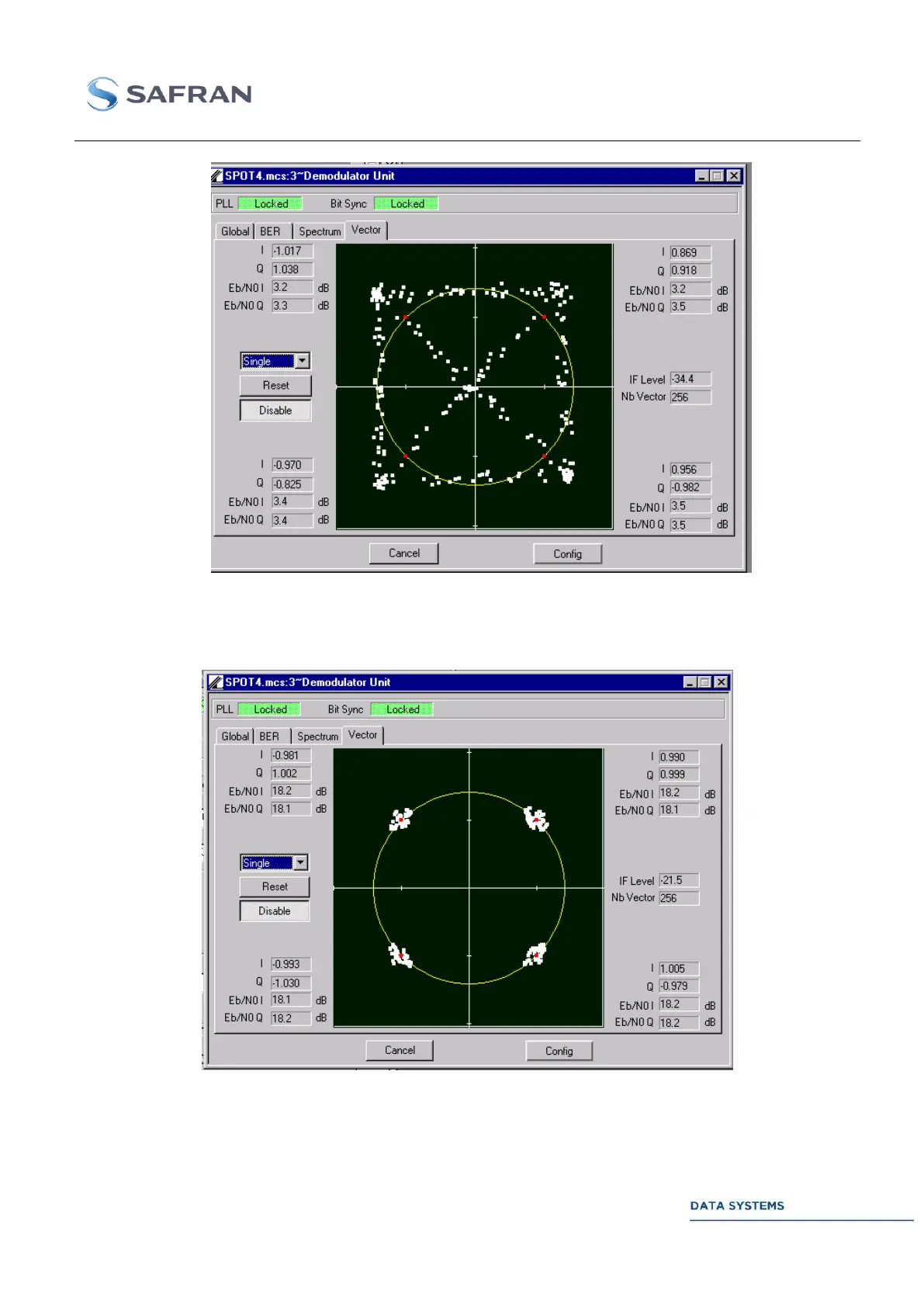 Incorrect bit rate setting (signal = QPSK 50 Mbps. Demodulator setting: 47 Mbps). Matched