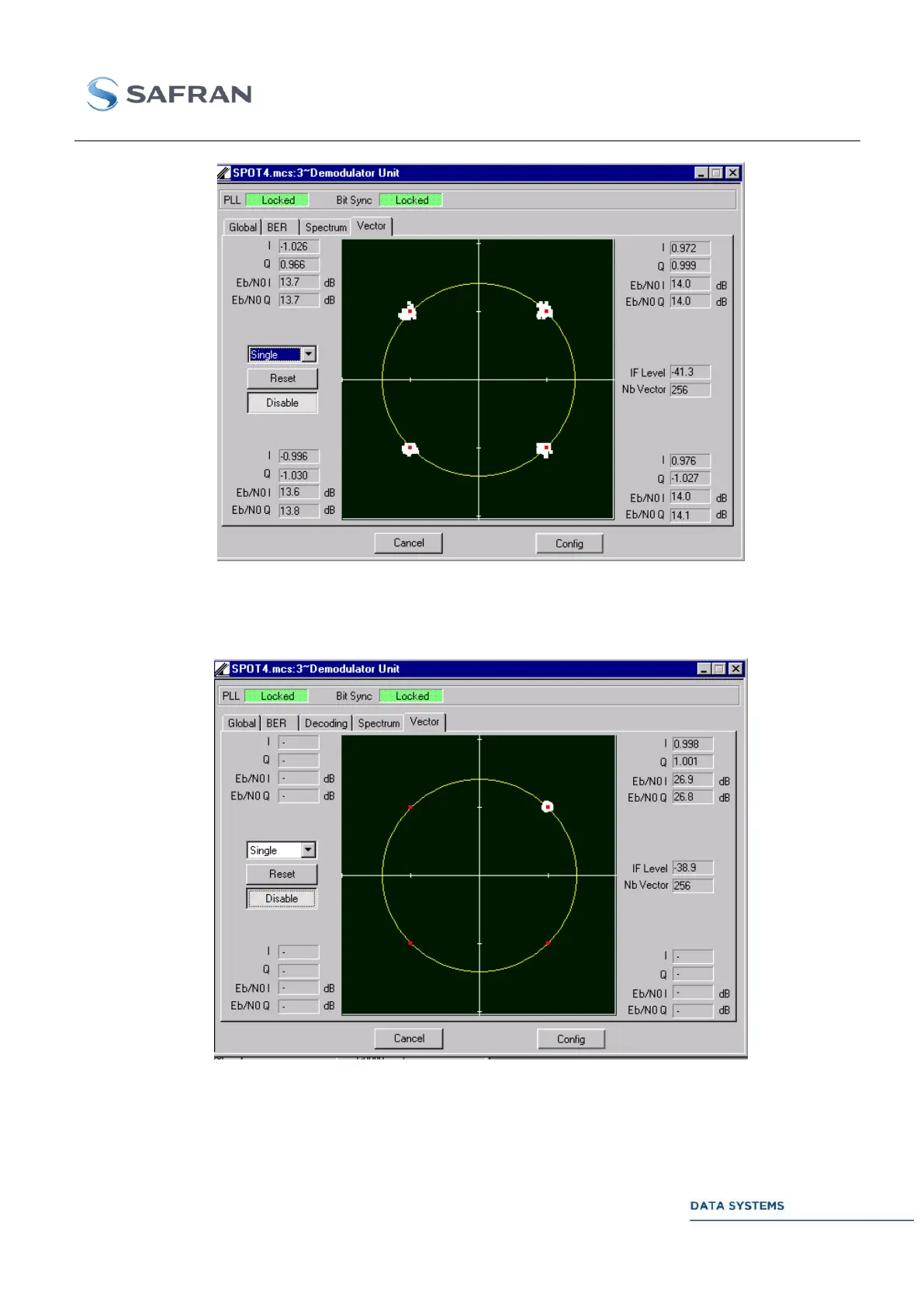 Dual 50 Mbps QPSK signals at 720 and 770 MHz. Limited interferences thanks to an RRC filter
