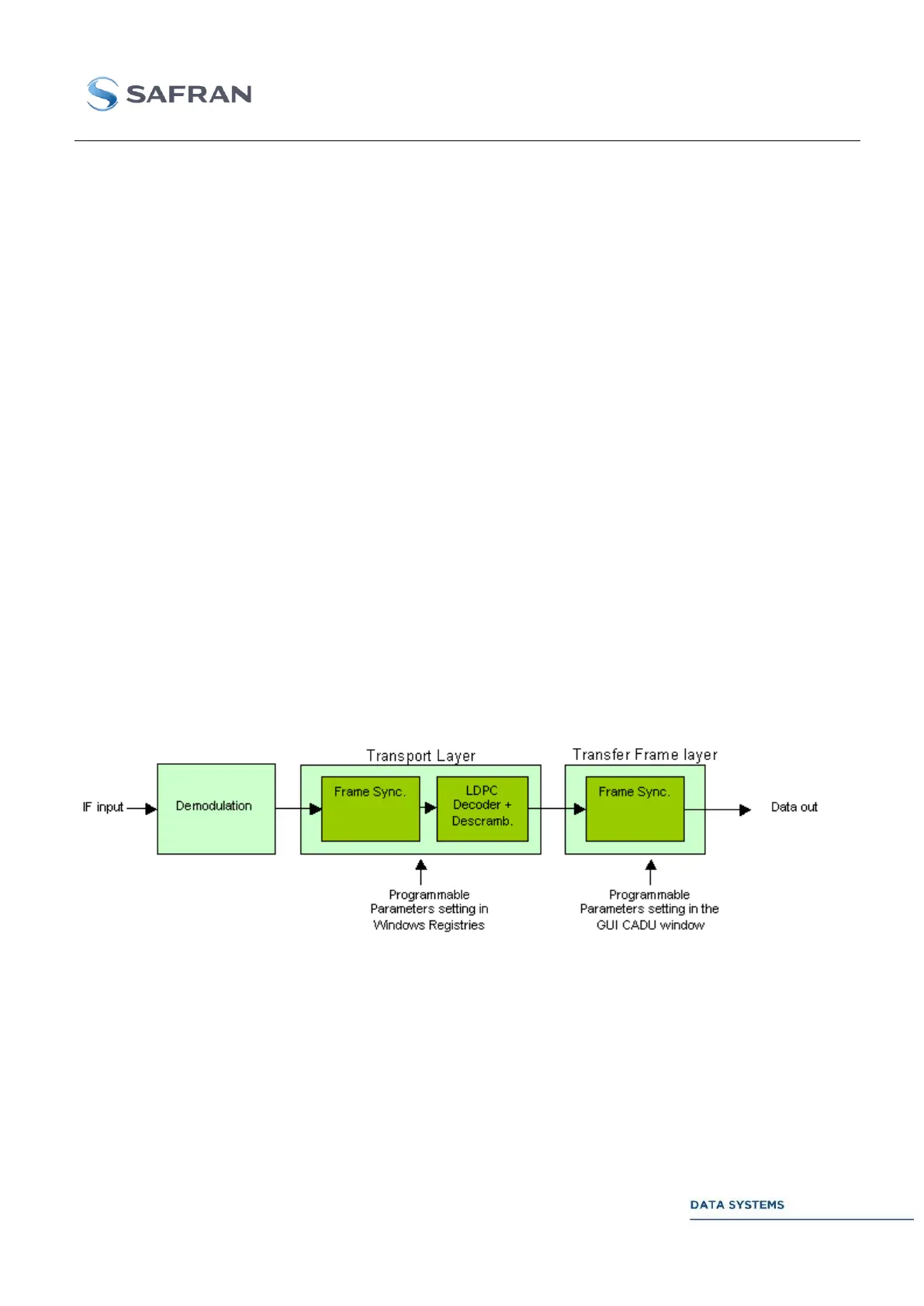The Transport layer is implemented between the demodulator output and the input of the CADU frame