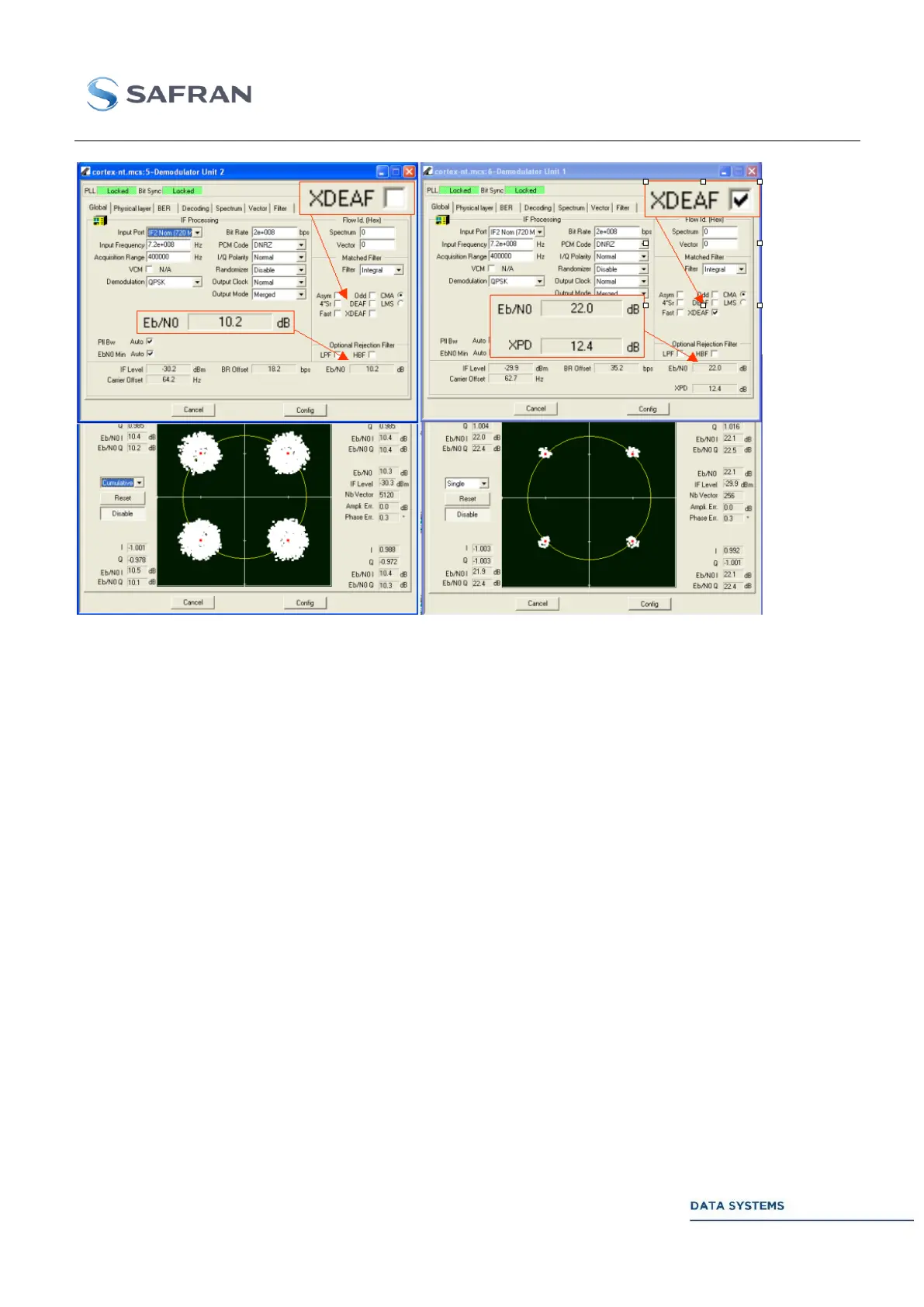 selected (example RRC filter) and the DEAF process is activated. When the frequency response of the