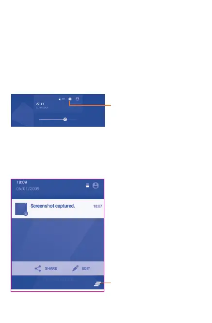 notification information on the left side. Touch and drag down the