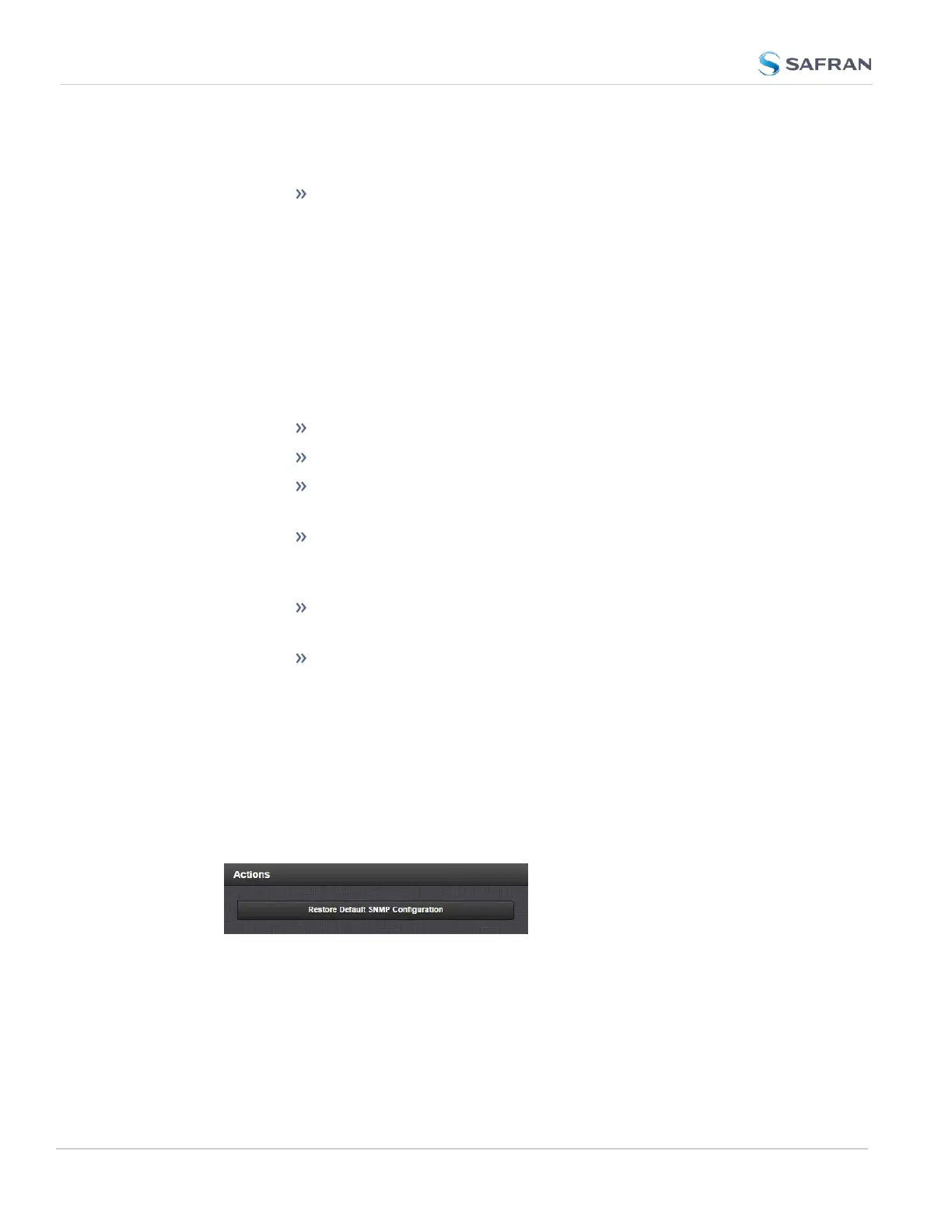 The Actions panel, which contains the Restore Default SNMP Con-
