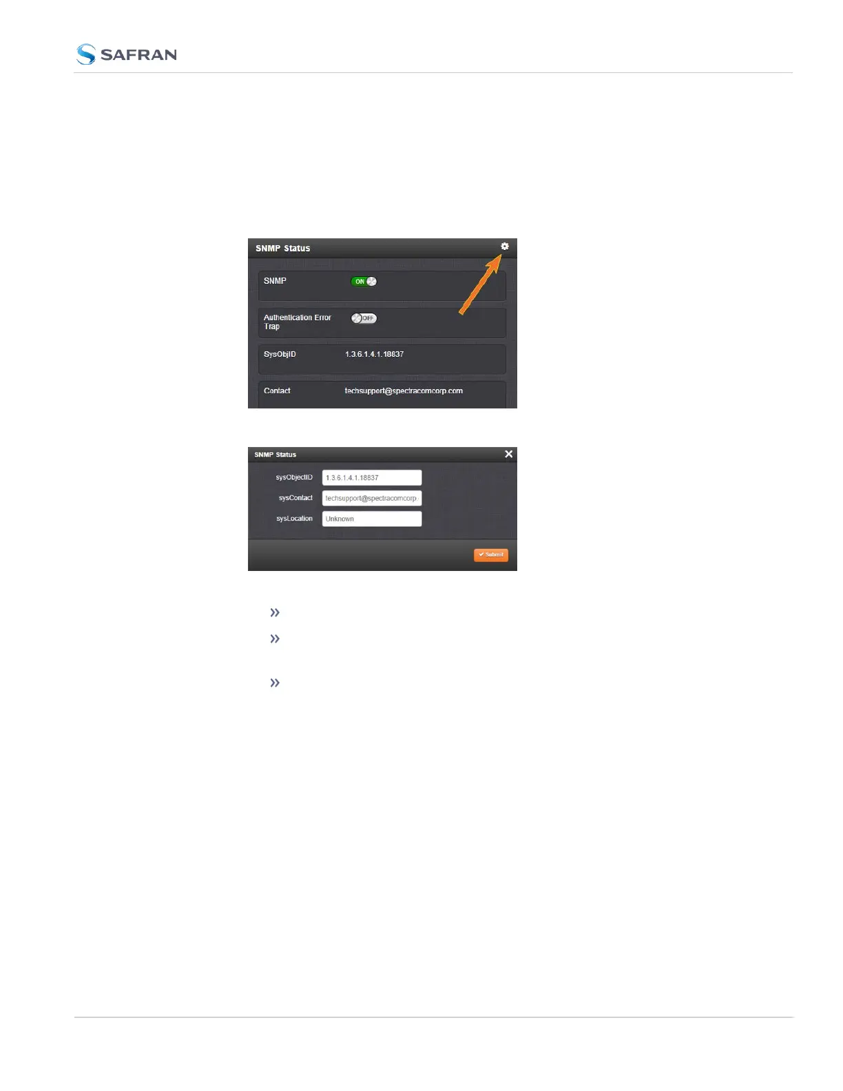 In the SNMP Status panel on the left, click the GEARicon in the top-right
