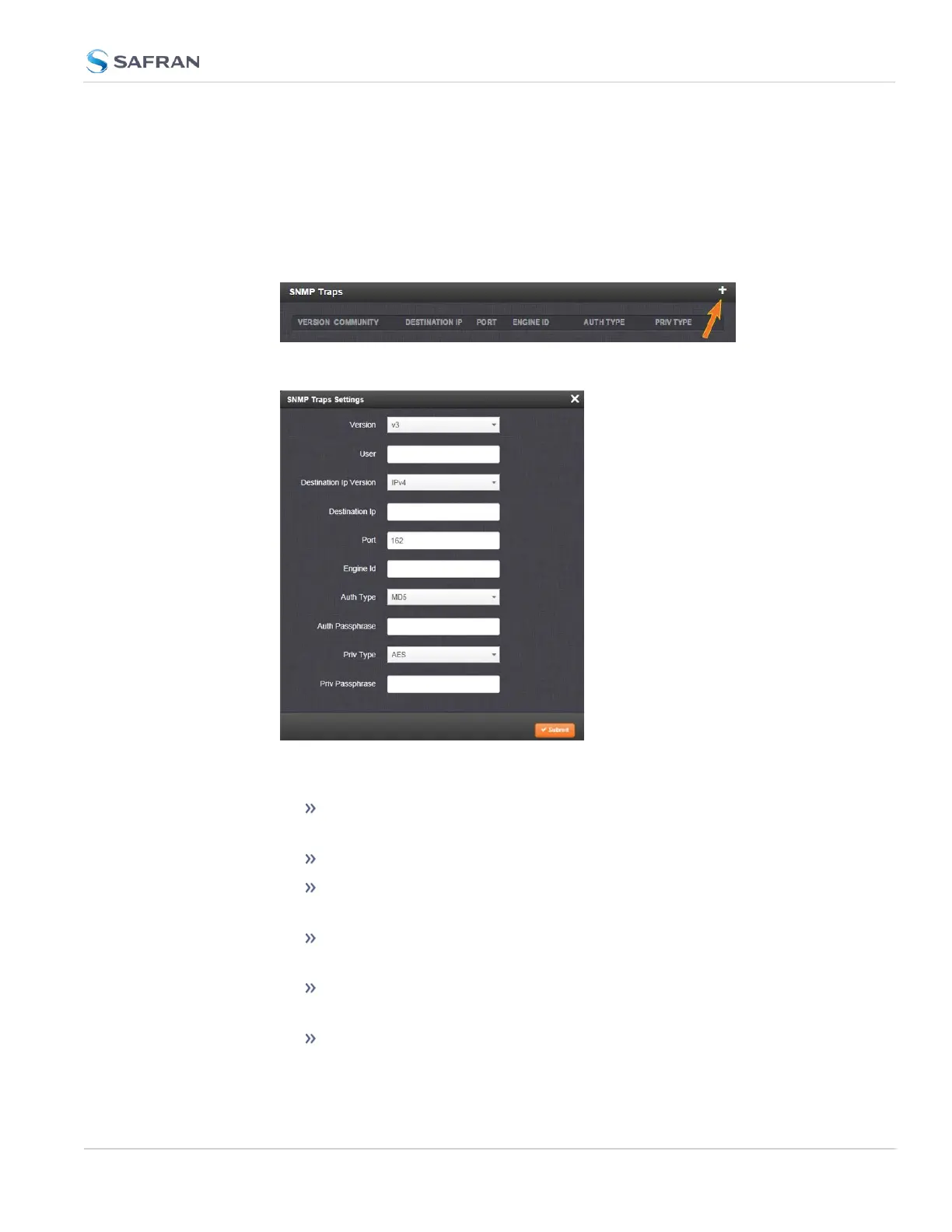 In the SNMP Traps panel, click the PLUS icon in the top-right corner.