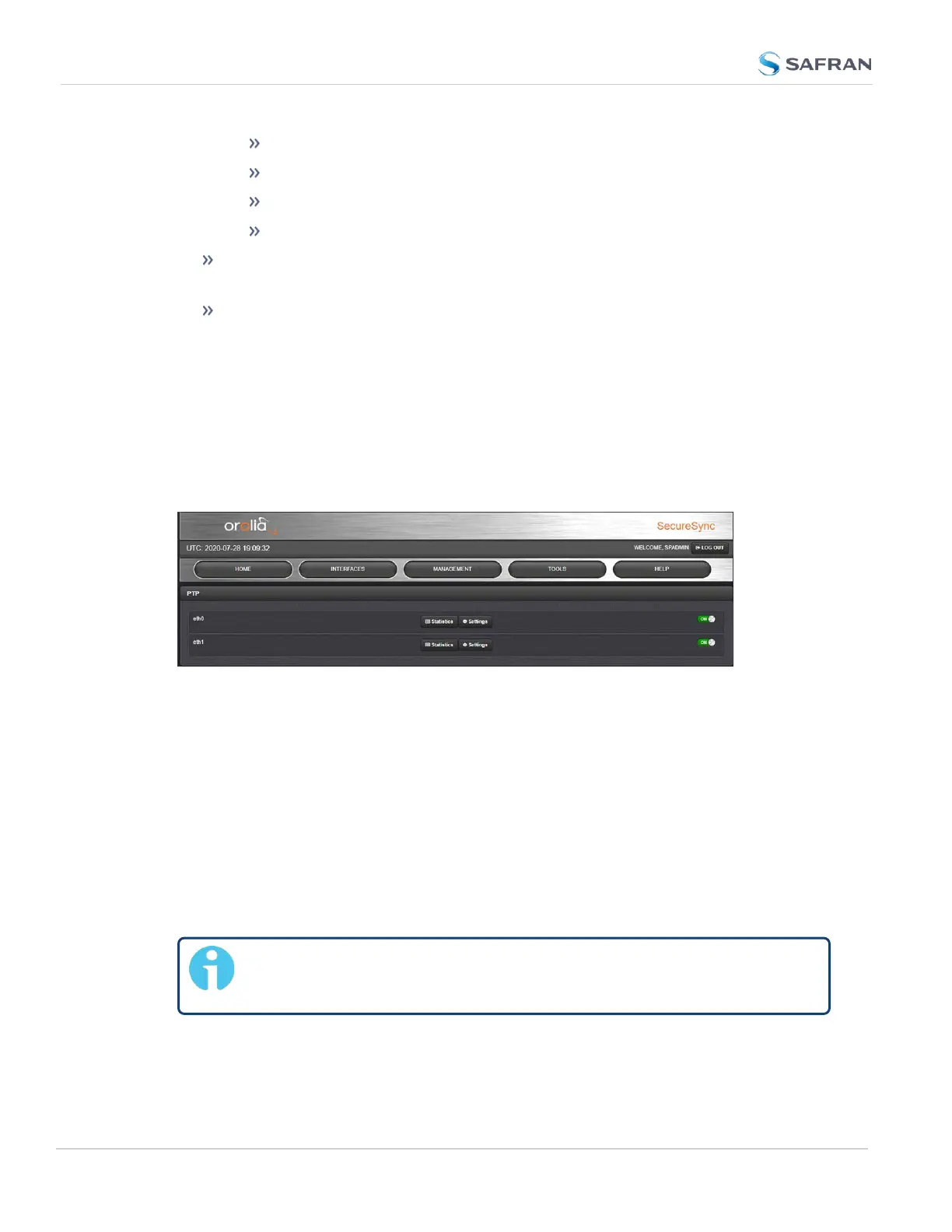 To access the PTP screen, navigate to MANAGEMENT > NETWORK: PTP Setup.